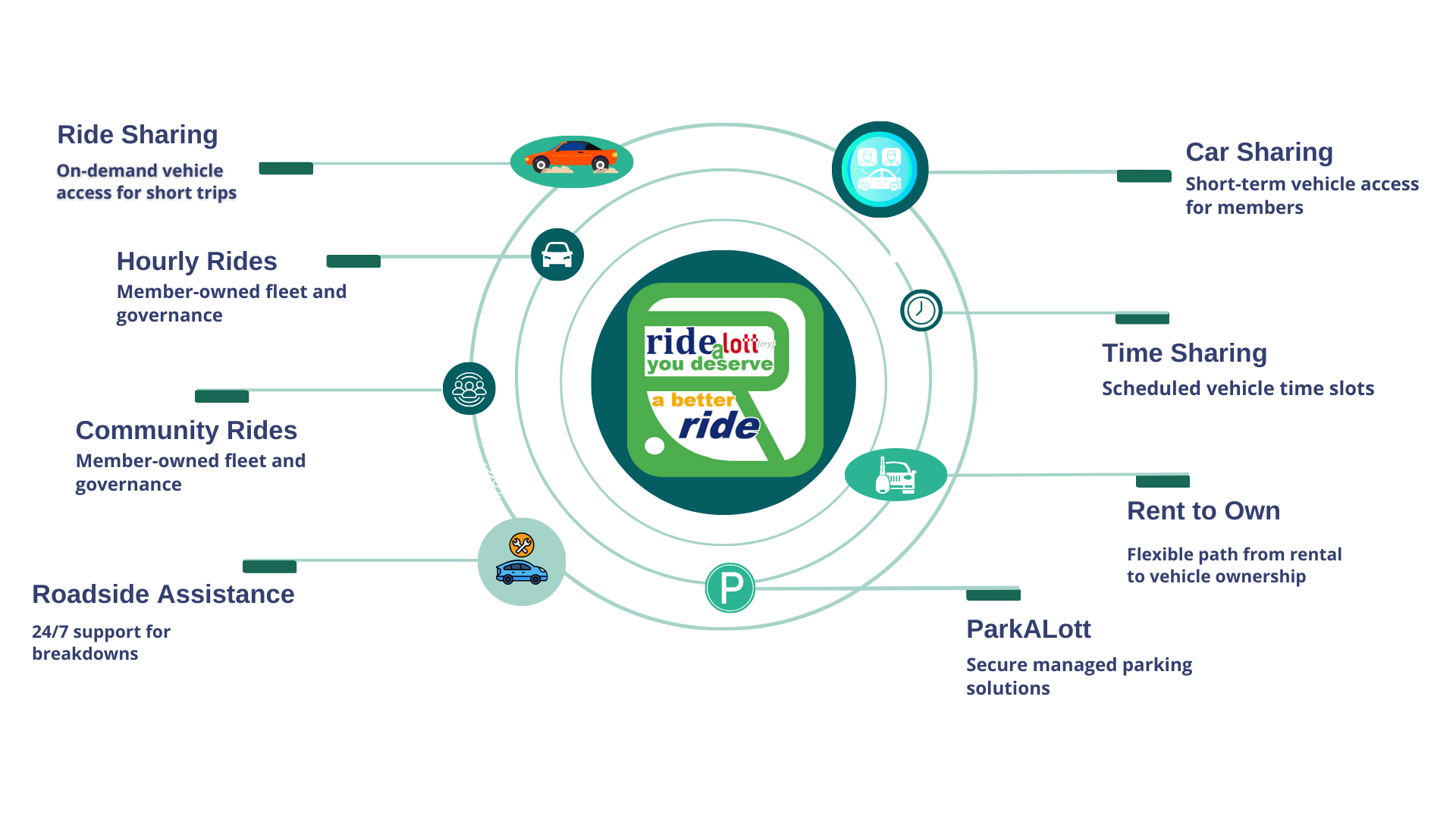 RideALott combines ride sharing, ownership models, and community-driven mobility into a single powerful ecosystem.